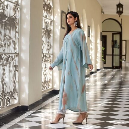Original price was: ₨ 6,999.₨ 4,099Current price is: ₨ 4,099.BLUE MARBLE – Sky Blue Kaftan