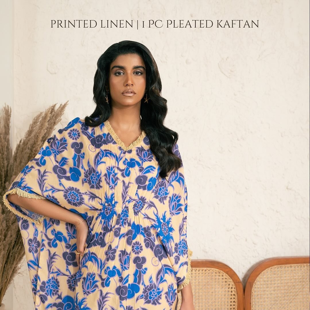 A beautiful ready-to-wear 1 PC kaftan crafted in luxurious printed linen, designed to bring effortless elegance to your winter wardrobe. This exquisite ensemble blends comfort with sophistication, making it a must-have for the season.