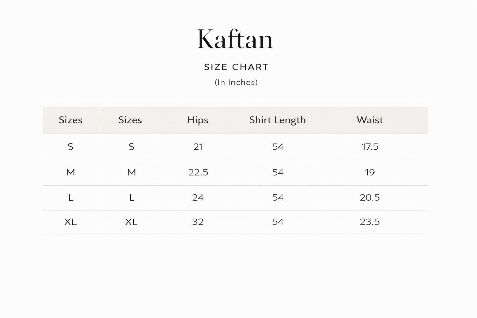 The relaxed yet flattering silhouette drapes beautifully, ensuring both comfort and class for daytime gatherings, intimate dinners, and seasonal get-togethers. Pair it with minimal accessories and let the kaftan speak for itself.