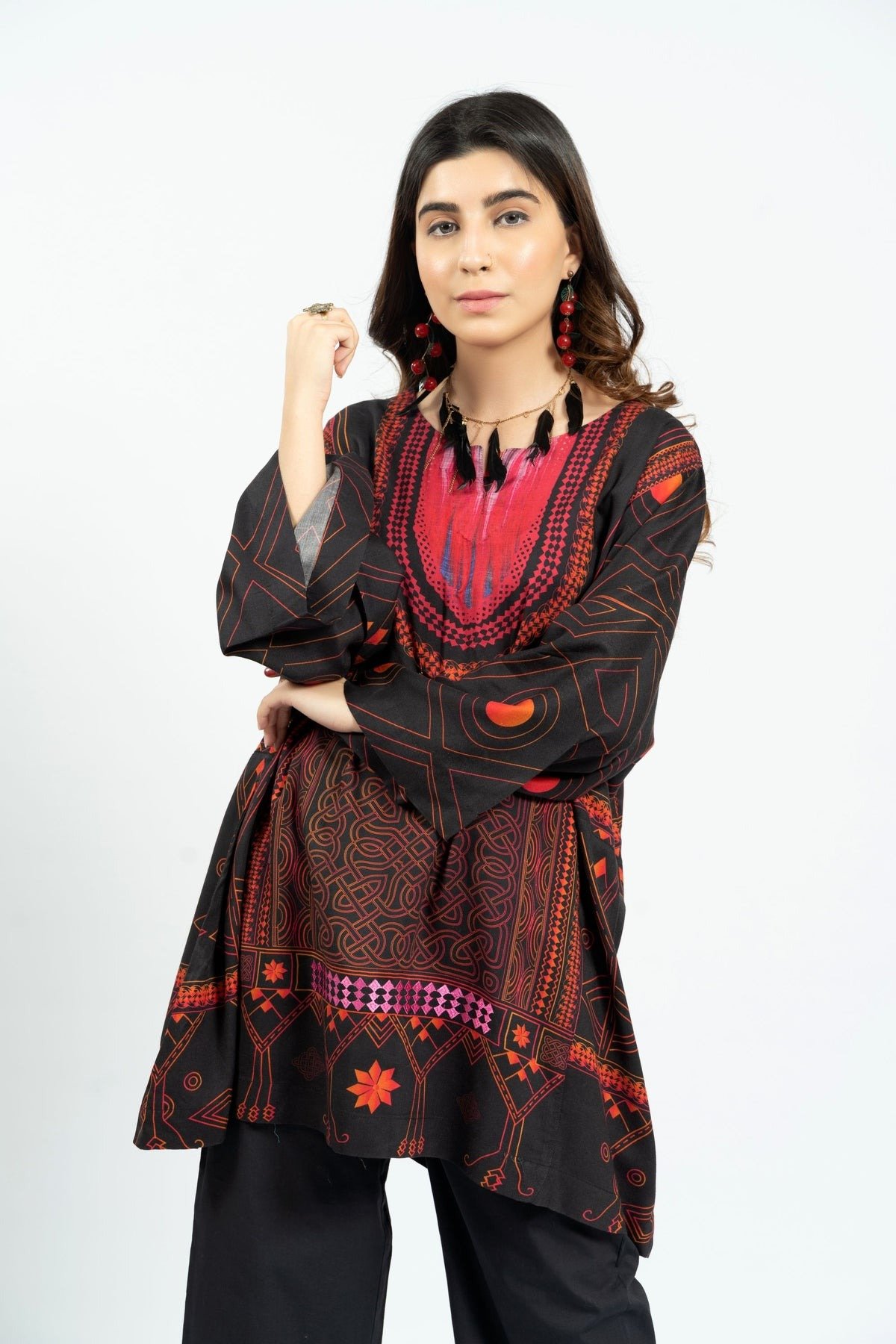 2 Piece Printed and Embroidered Shirt and Dyed Trouser